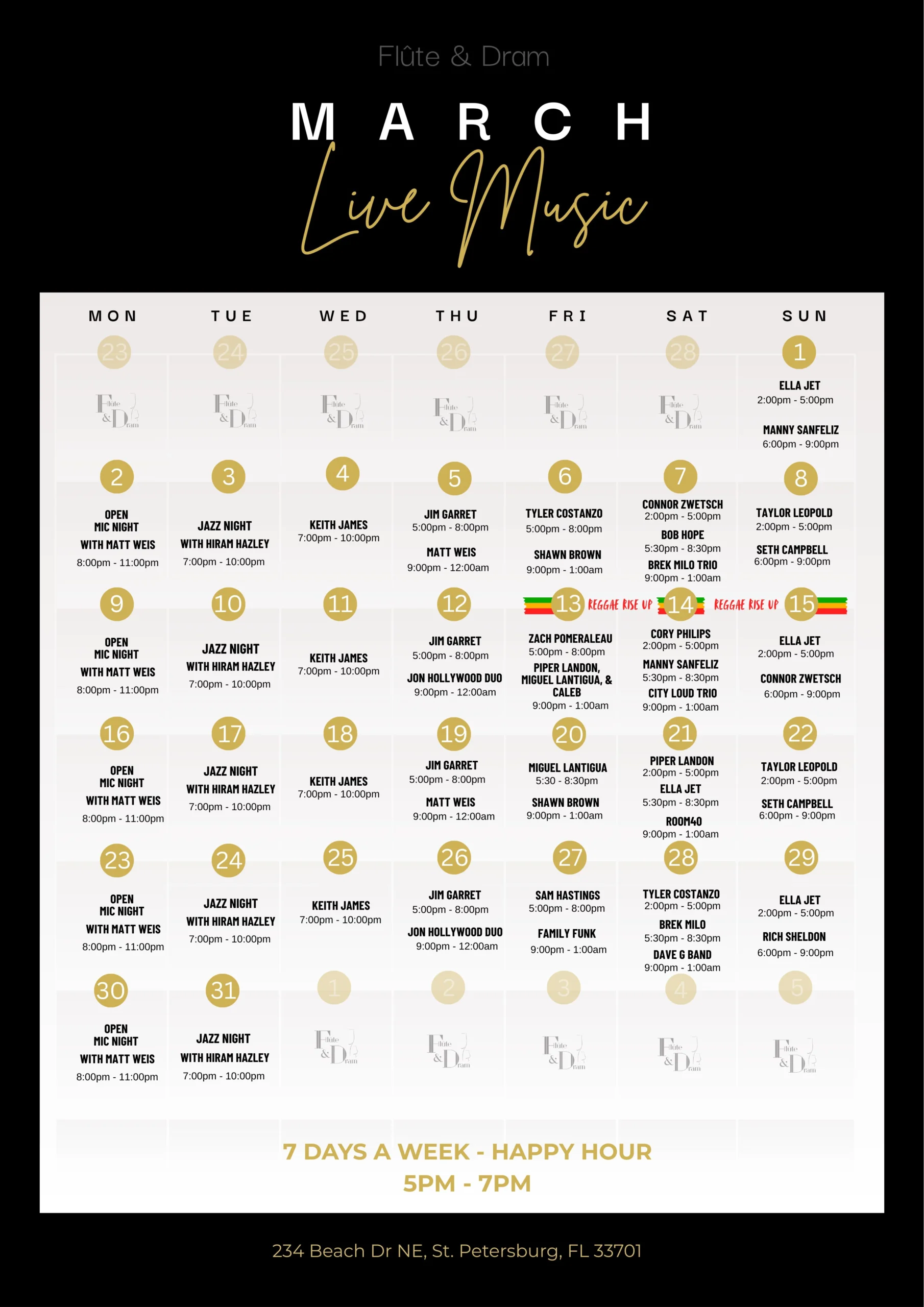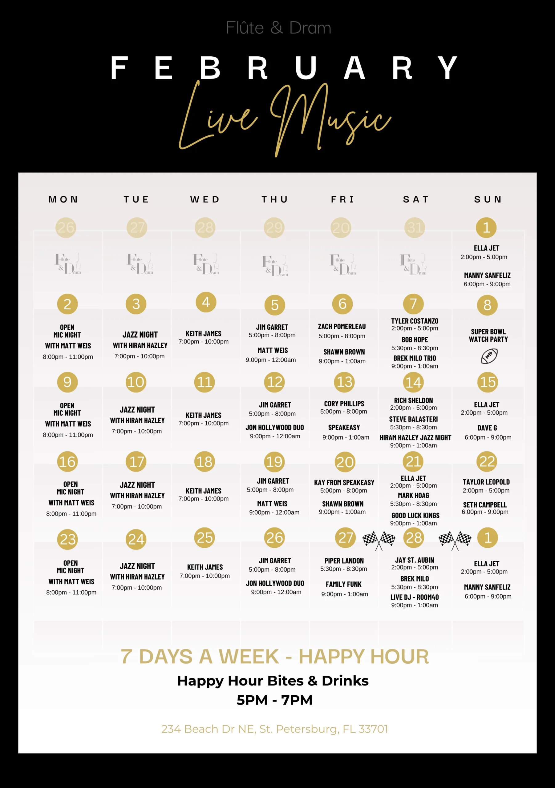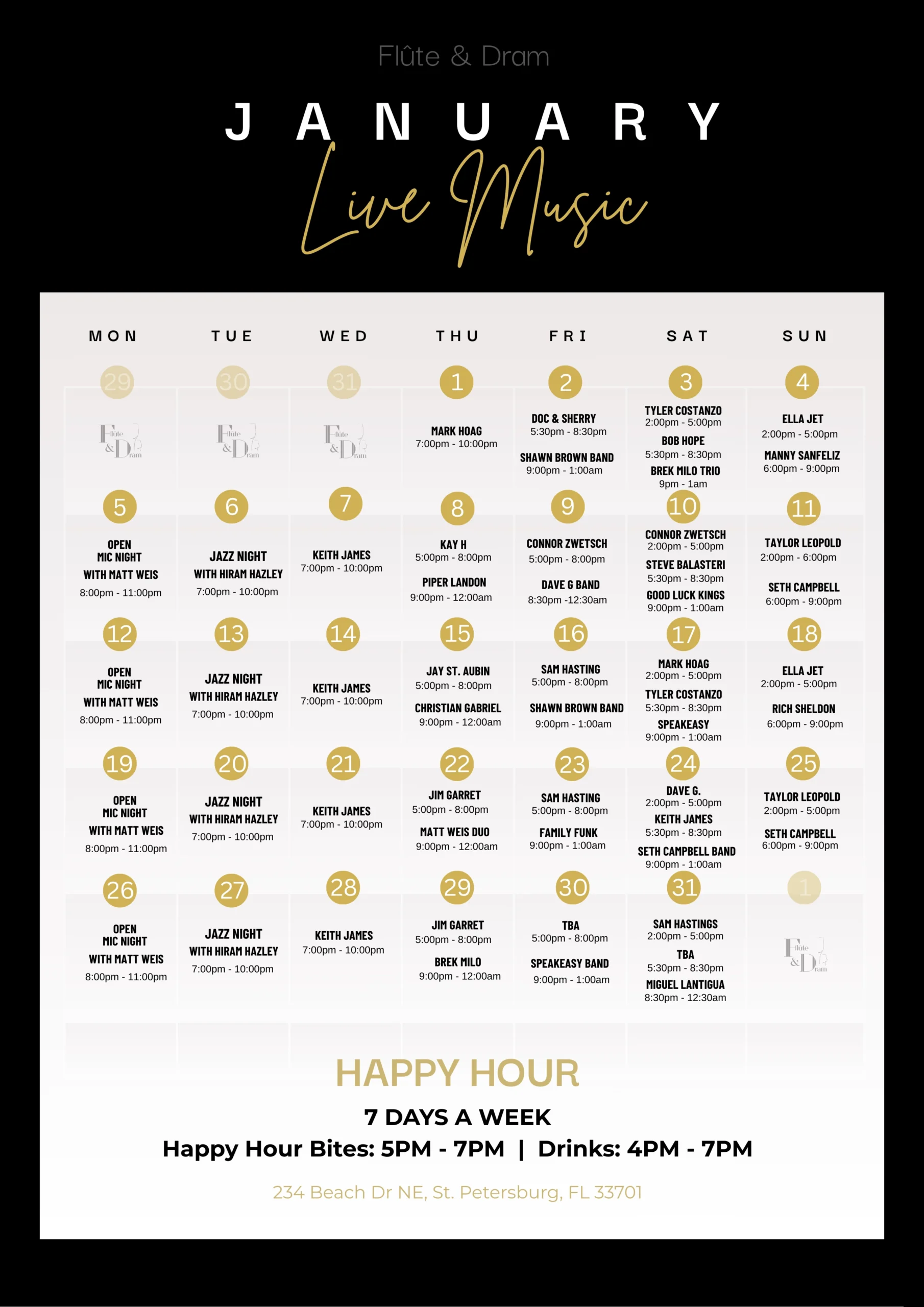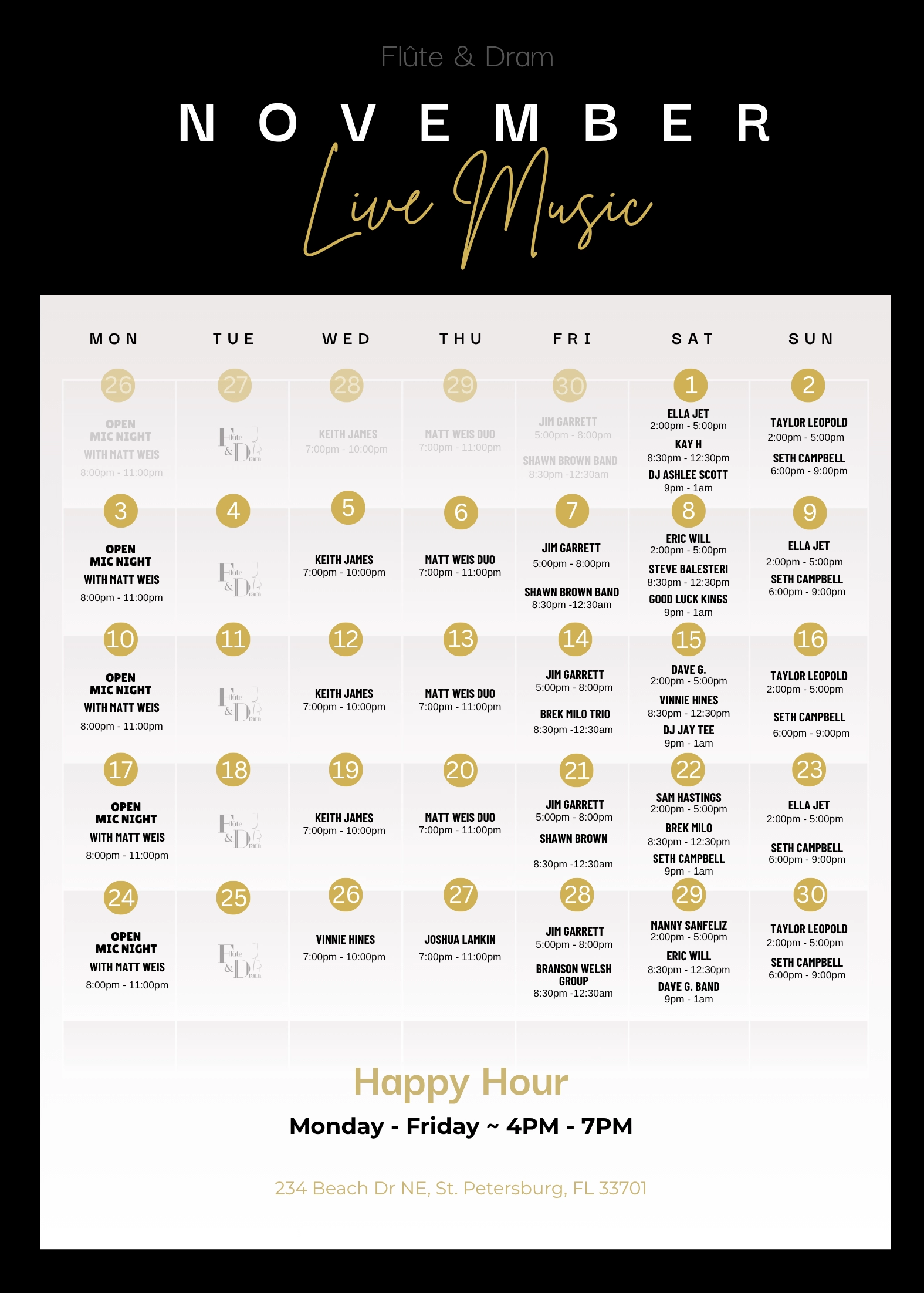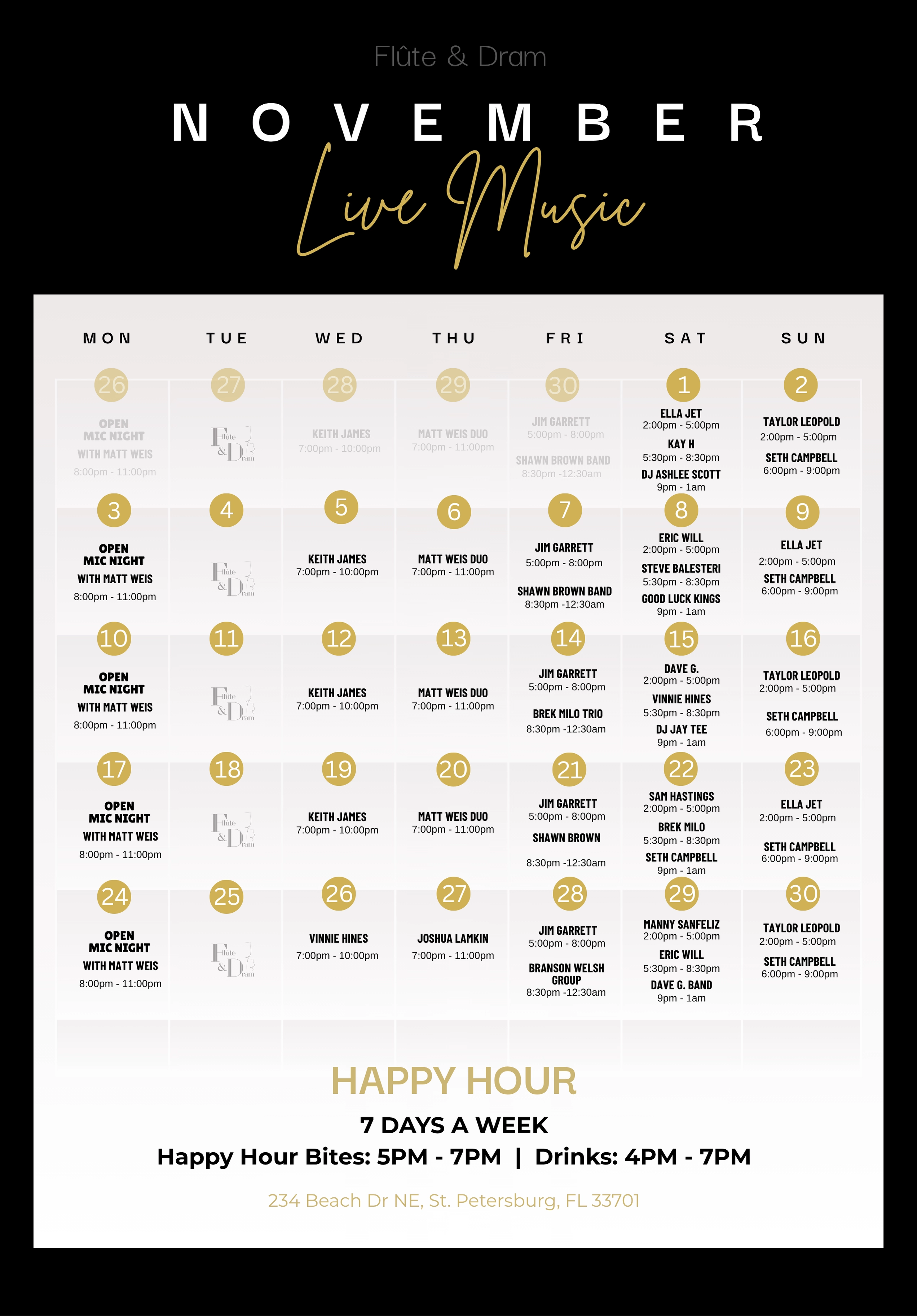 join us any day of the week & let us treat you to an unforgettable evening of entertainment, fine drinks, and the best view on Beach Drive.